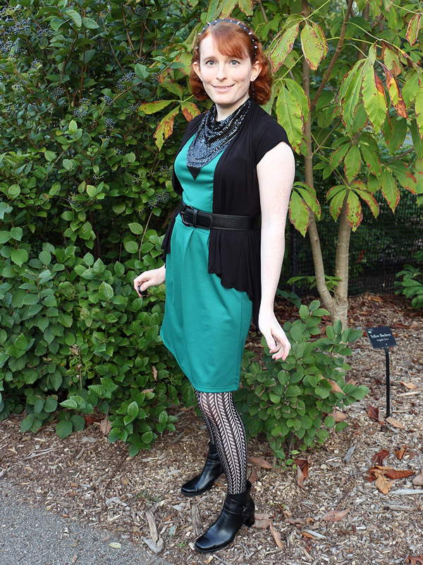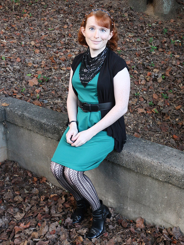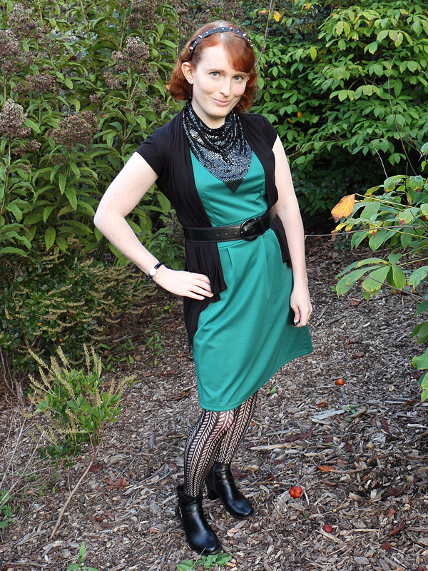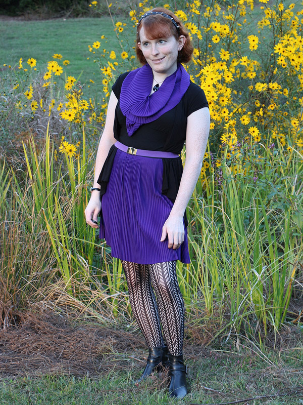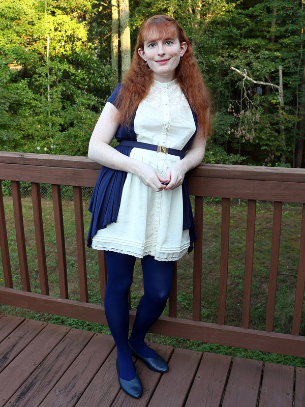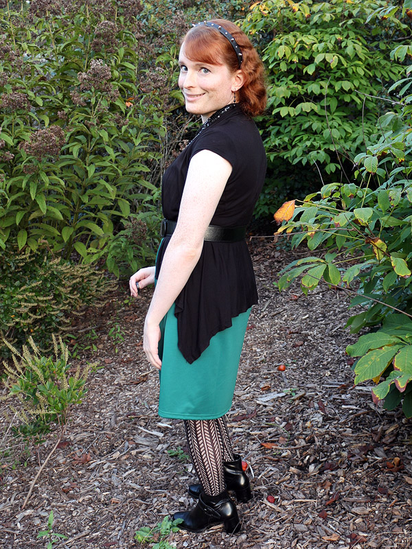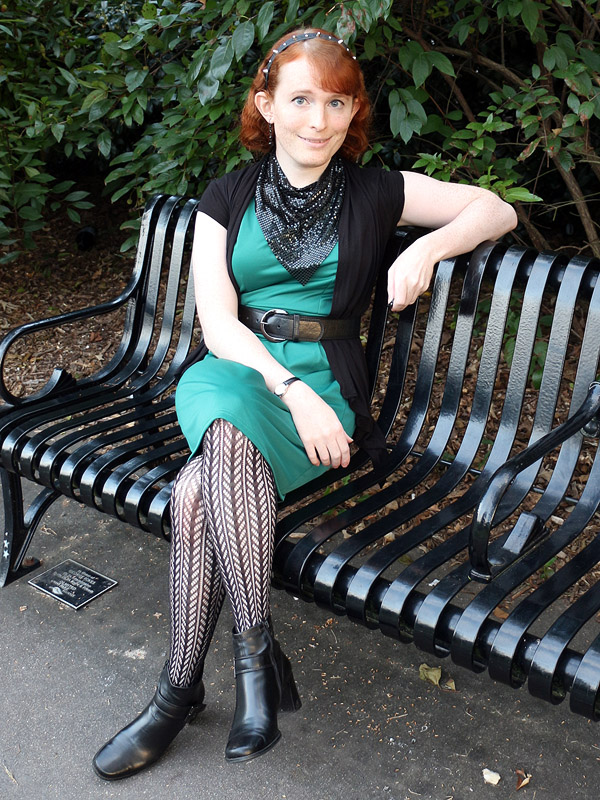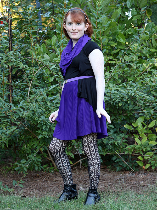 I bought these tights in connection with an Amy Pond costume I'd eventually like to do, her outfit from the Doctor Who episode "Vampires of Venice". I picked up another pair in the screen accurate dark brown, but am wearing the black pair here because it fits my own style better.